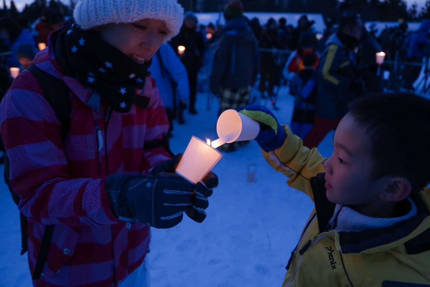A1:スノーキャンドルの点灯は17:00を予定しています。皆様に点火用の