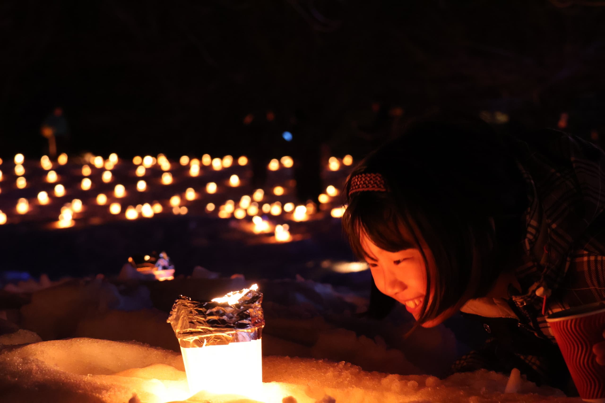 「雪原カーニバルなかさと」は約6千本のスノーキャンドルが雪原に