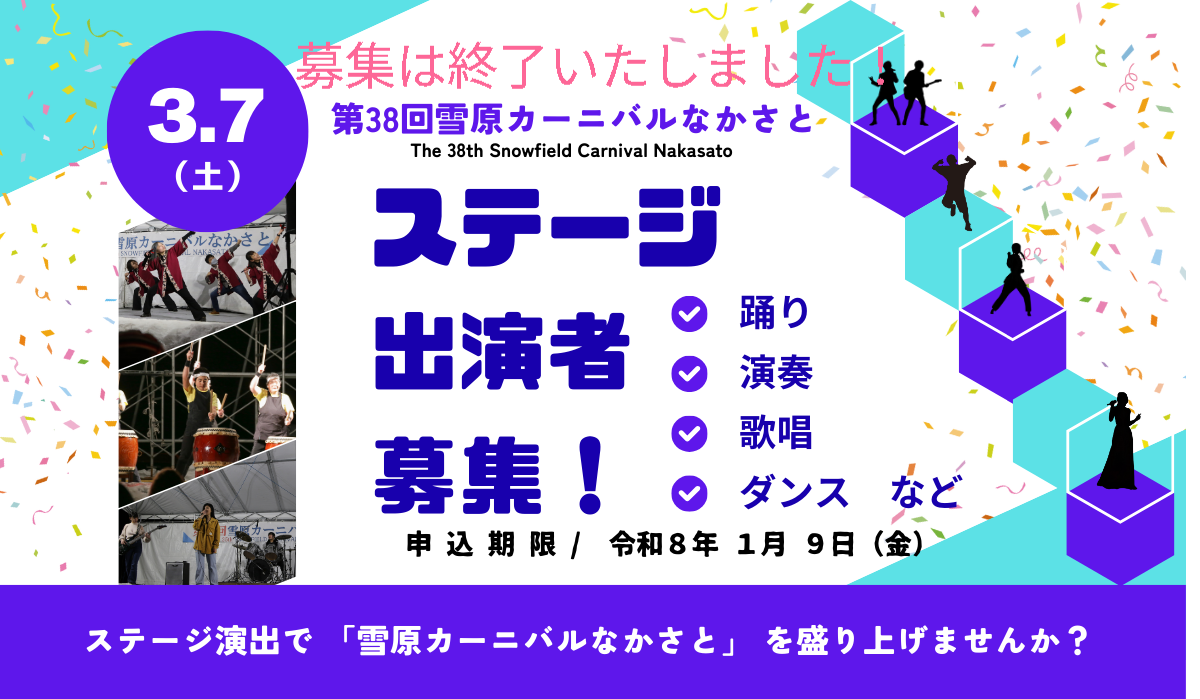「第38回雪原カーニバルなかさと」ステージ出演者募集についてお知らせします!